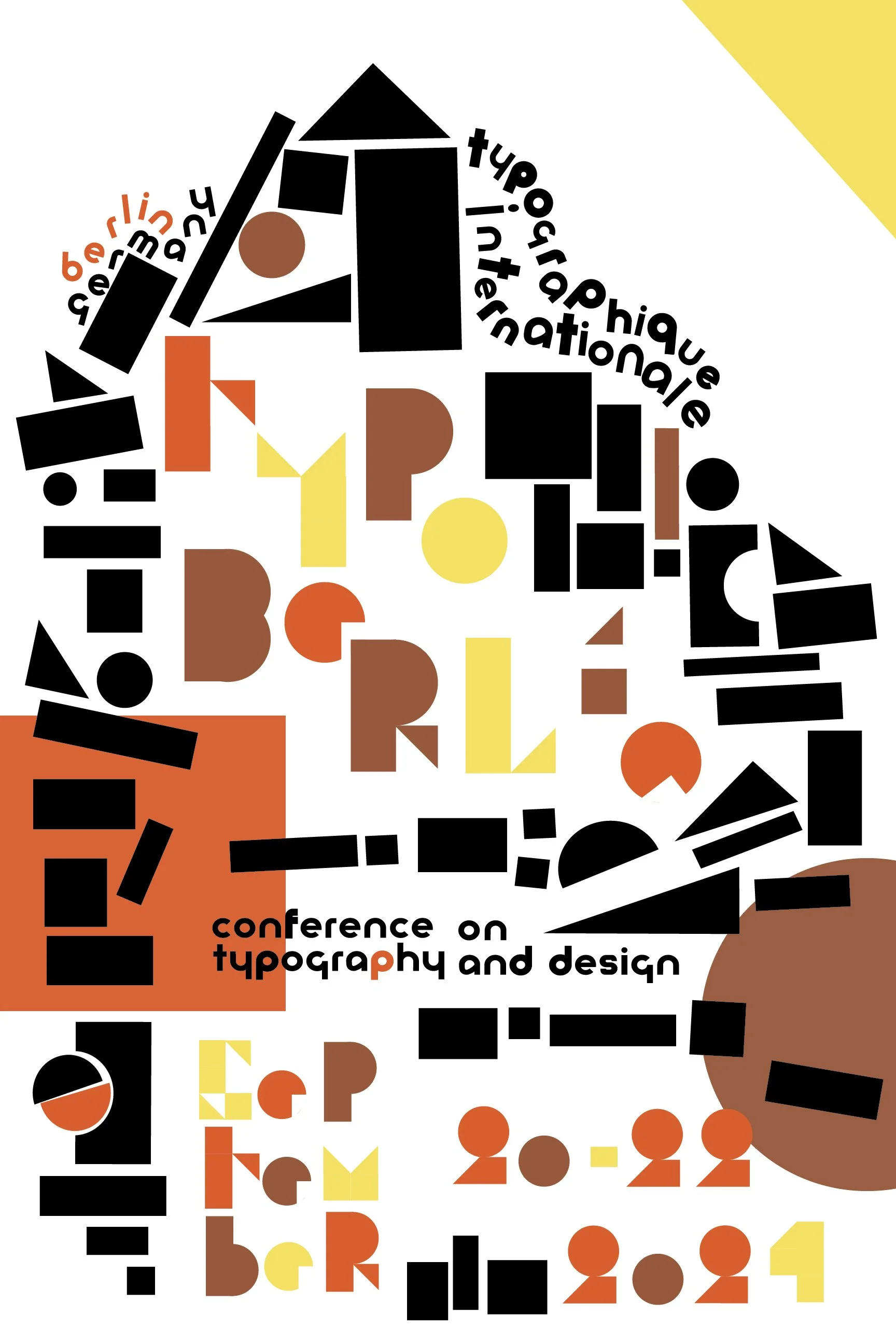 The warm colors were selected for their association with Germany and the Bauhaus; the type also extends this concept.